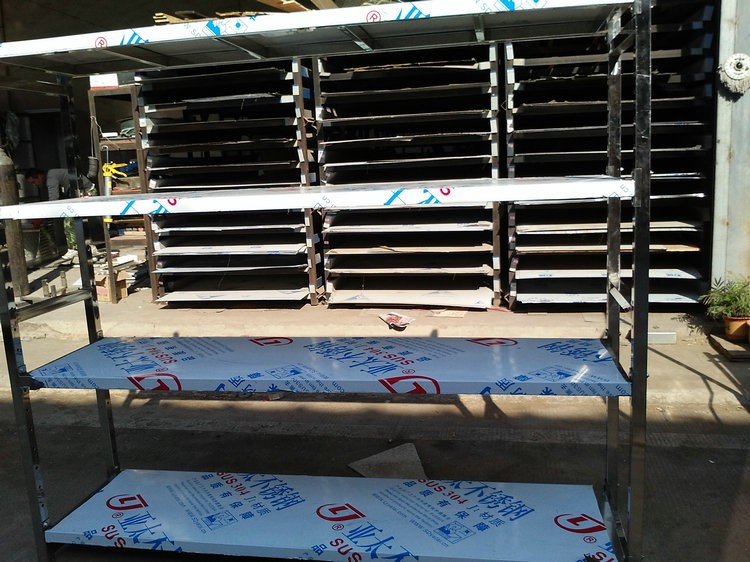 不銹鋼貨架可選用201或304不銹鋼材料、支架采用38*38不銹鋼方通制作。焊接美觀,受重力強(qiáng)。